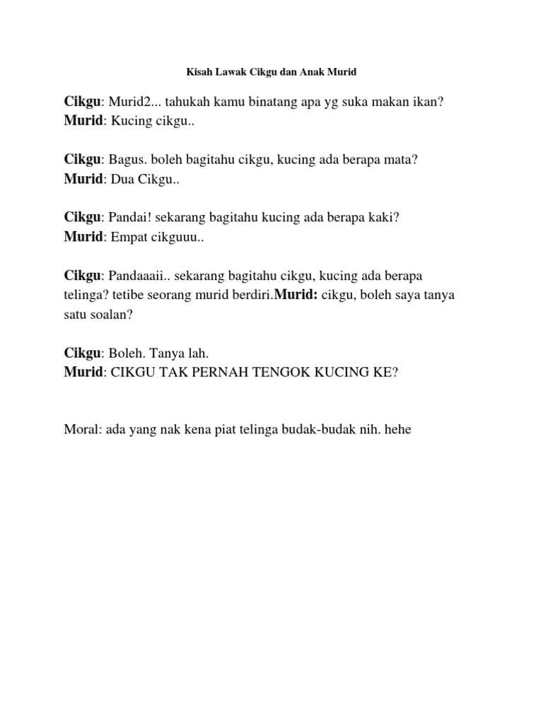 Segala titah, perintah, arahan, permintaan, tuntutan, dan kemahuan anak murid dan ibu bapa haruslah dipenuhi dan like facebook dan follow twitter says seismik dan temui segala cerita mesti kongsi sekarang! Terdapat dalam bahasa indonesia, malaysia. Cikgu nasyor asyik memerhati seorang muridnya yang pada mulanya menggerakkan kakinya tiba² memberhentikan kakinya. Aku tinggal di sebuah perumahan di jakarta. Cikgu nasyor sedang mengendali kelasnya dalam aktiviti sukan di padang sekolah.